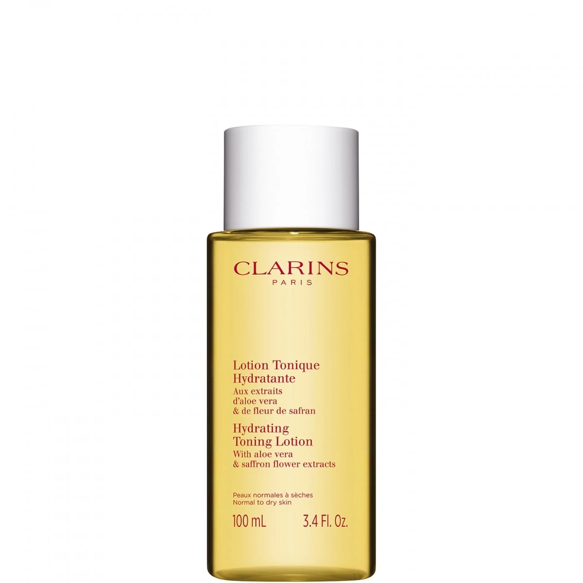 La lotion tonique Clarins, qui parfait le démaquillage et hydrate, apaise et adoucit la peau grâce à un cocktail de plantes.