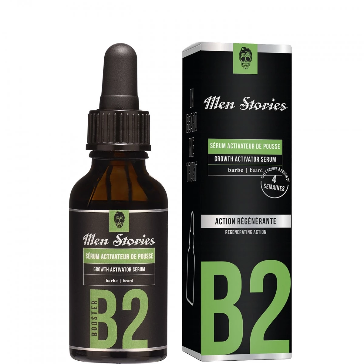 Le sérum B2B de Men Stories est une huile conçu pour stimuler la pousse et densifier la barbe.