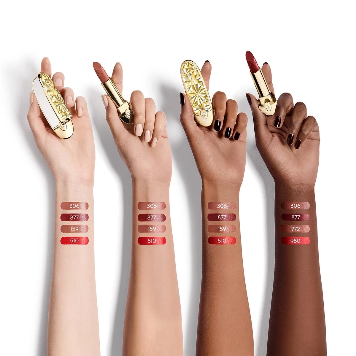 Les formules satin et mate velours de ce Rouge G nouvelle génération s’accompagnent d’une texture fondante ultra-légère pour une sensation lèvres nues et un confort 16h³.