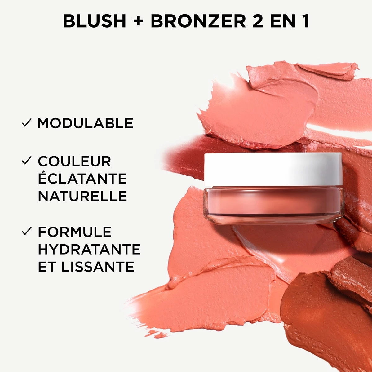 - Blush crème + bronzeur en un seul produit, pour une peau éclatante