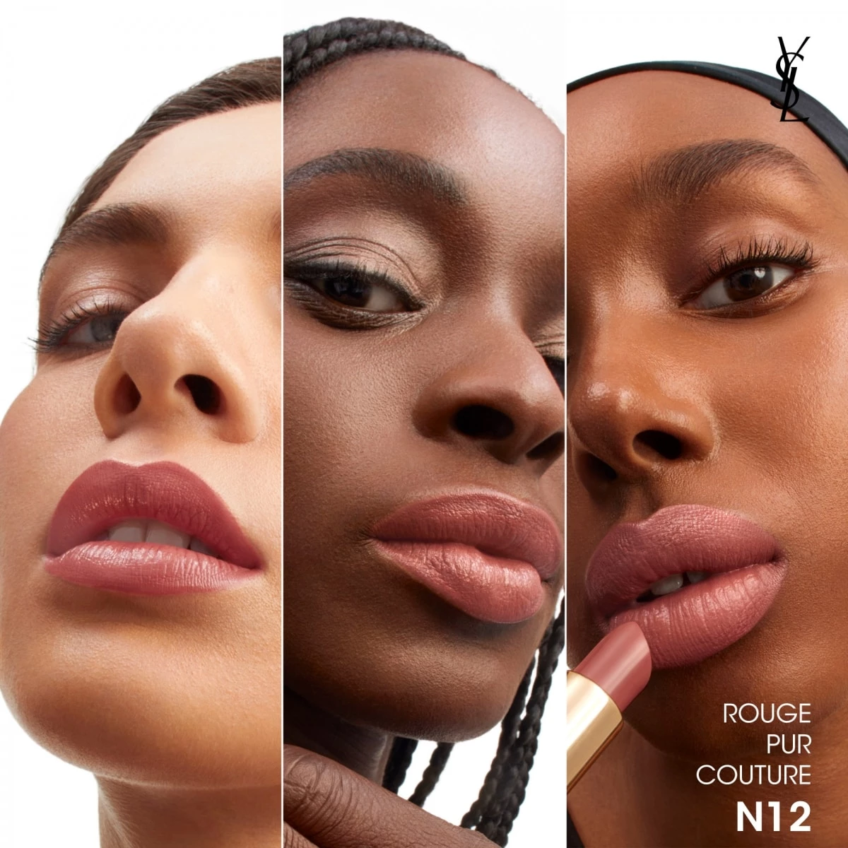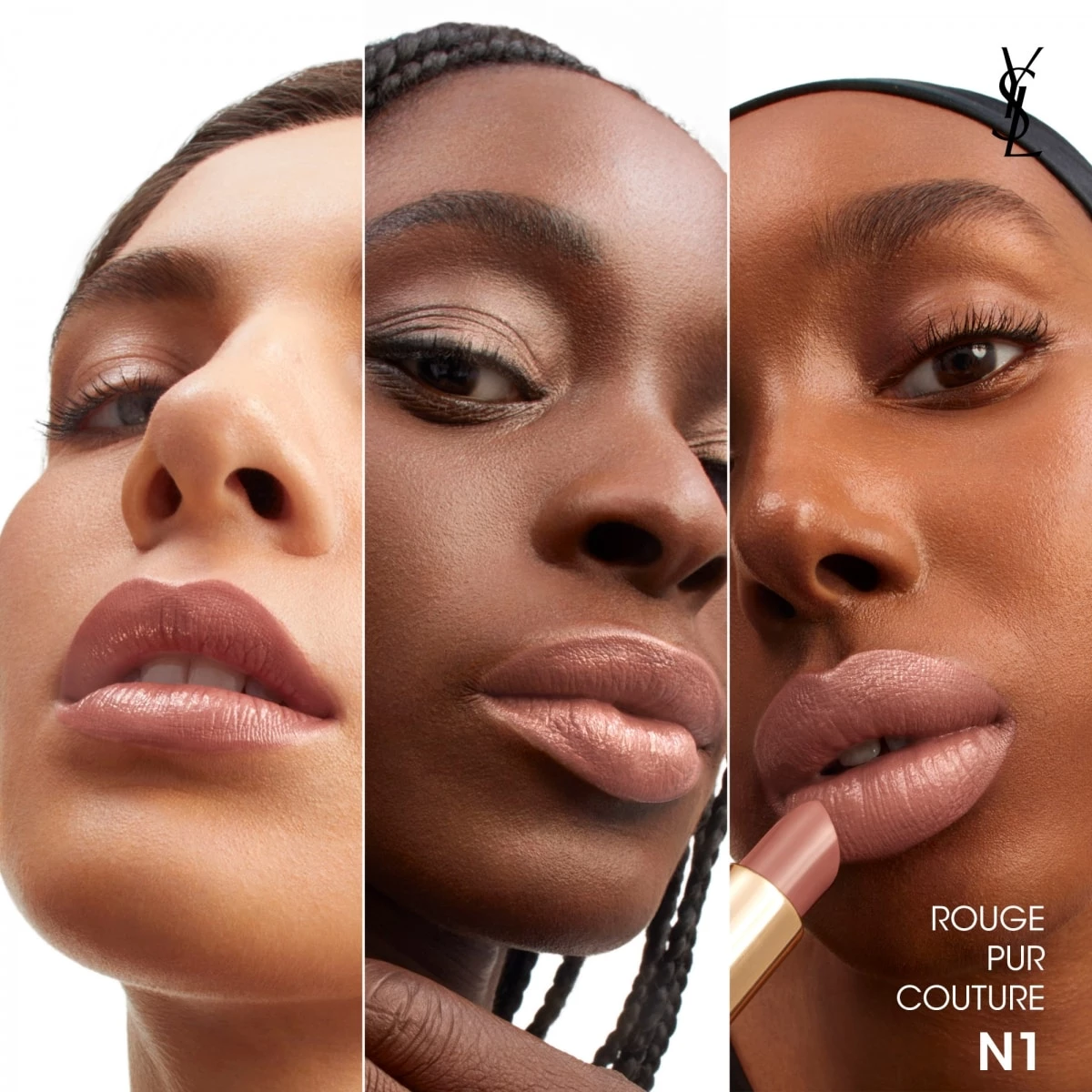 Grâce à sa texture crémeuse, légère & confortable, Rouge Pur Couture s'applique sans effort pour habiller les lèvres d’une couleur éclatante dans un fini satiné couture, en un passage.