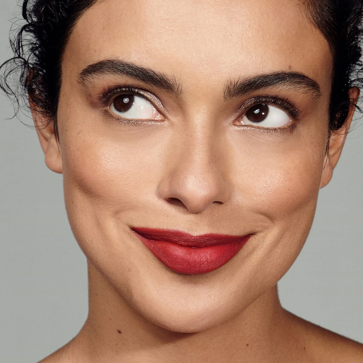 Les lèvres sont saturées d'une couleur intense - en un seul geste.