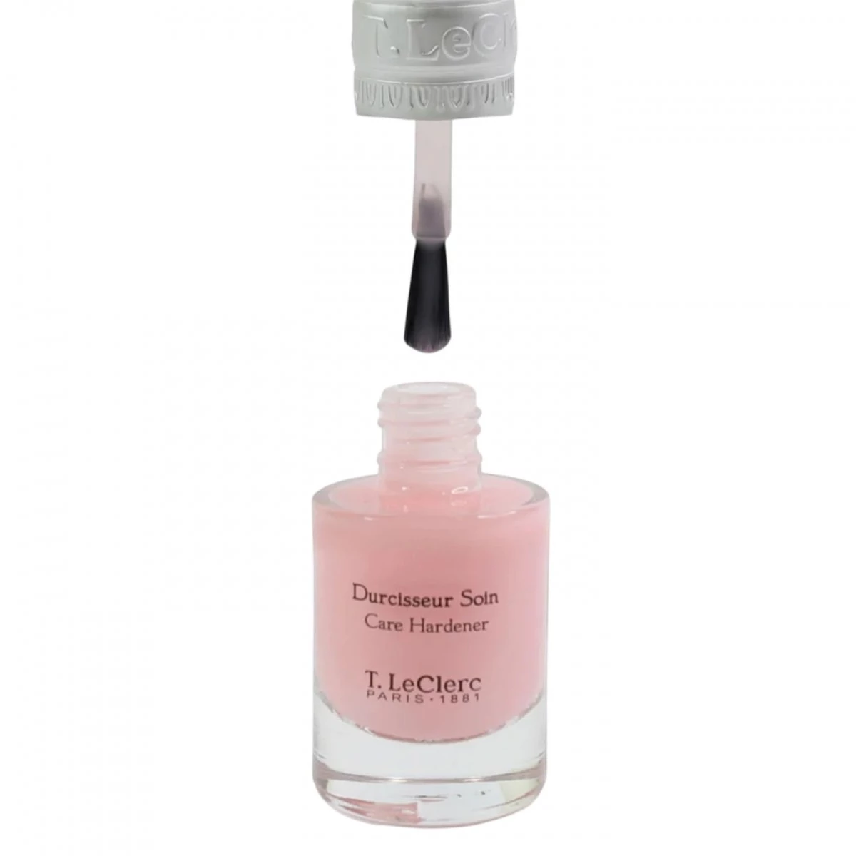 - Appliquer une couche de Durcisseur T.LeClerc sur ongles nus le 1er jour et une 2ème couche le lendemain.